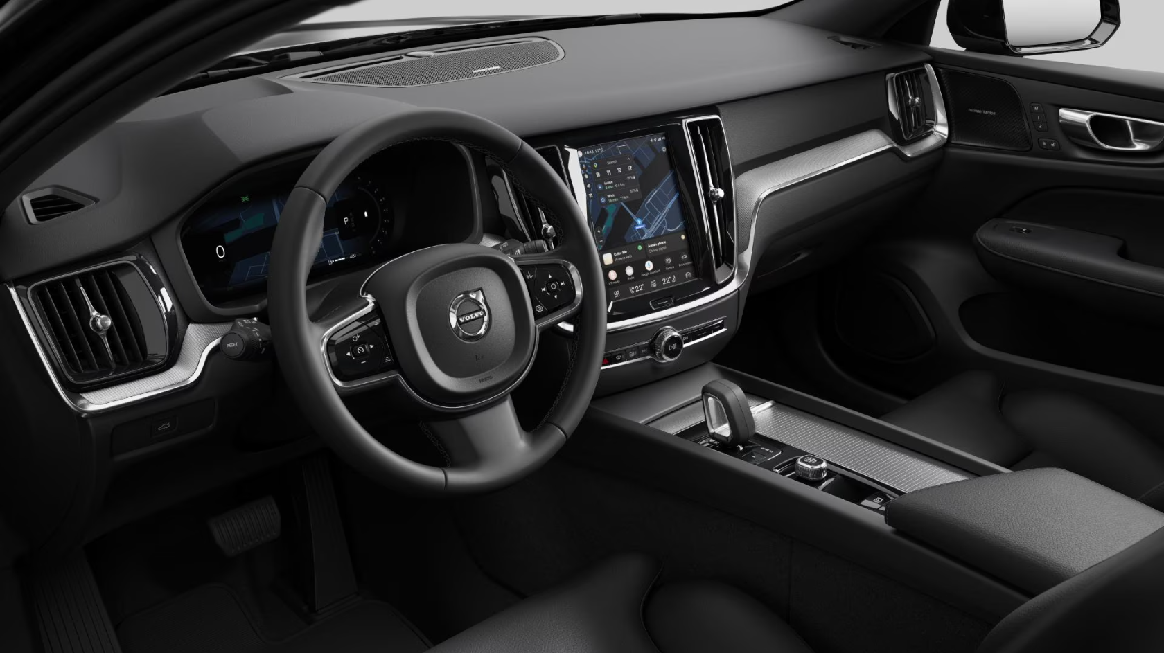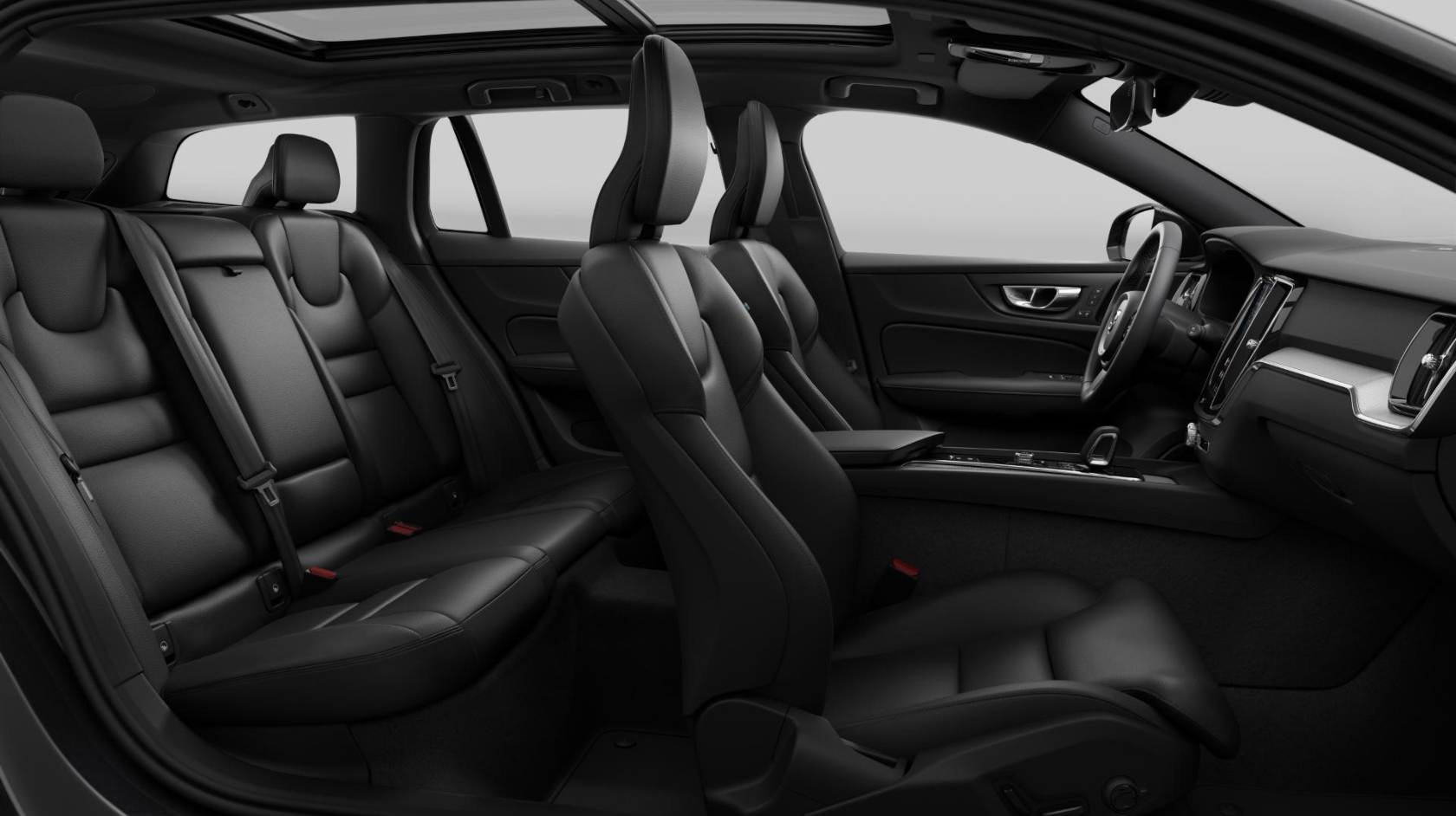 Panoramatické strešné okno, integrovaná elektrická slnečná clona, Kamery parkovacieho asistenta – 360-stupňový pohľad zhora obsahuje predné, zadné a bočné senzory novej generácie, Volvo Guard Alarm s náklonovým a pohybovým čidlom, dvojité uzamykanie zámkov dverí, čierne čalúnenie stropu